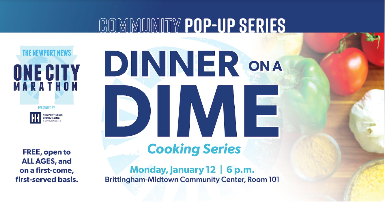 Dinner on a Dime Cooking Series- Join us for a fun and flavorful workshop where healthy eating meets real-life simplicity! Enjoy a live cooking demonstration from Amarja McCormick, Nutrition Education Facilitator with the Virginia Cooperative Extension, taste delicious samples, and learn how to create easy, low-cost meals that nourish your body and fit your budget. Perfect for beginners, food lovers, and anyone looking to cook smarter—not harder!